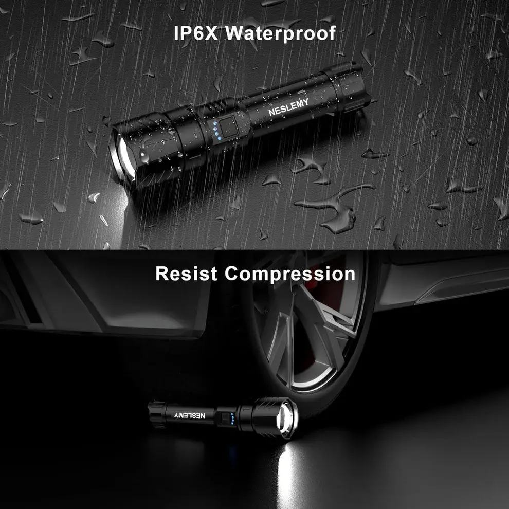 The NESLEMY™rechargeable flashlight features fast Type-C charging and reverse charging to power your devices in special circumstances, and can be charged by connecting to any adapter by our USB connector.